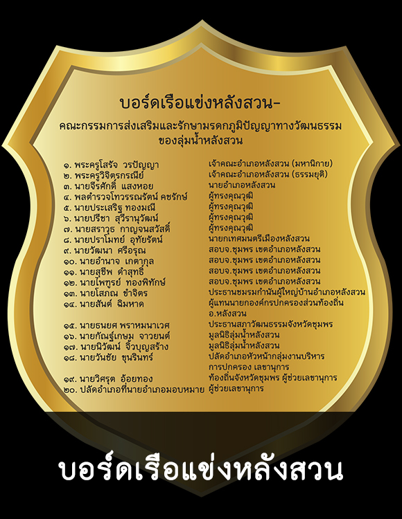 งานประเพณีแห่พระแข่งเรือขึ้นโขนชิงธงชิงโล่และถ้วยพระราชทานอำเภอหลังสวน จังหวัดชุมพรมรดกภูมิปัญญาทางวัฒนธรรมของลุ่มน้ำหลังสวนและของชาติงานประเพณีแห่พระแข่งเรือขึ้นโขนชิงธงชิงโล่และถ้วยพระราชทานอำเภอหลังสวน จังหวัดชุมพรมรดกภูมิปัญญาทางวัฒนธรรมของลุ่มน้ำหลังสวนและของชาติ