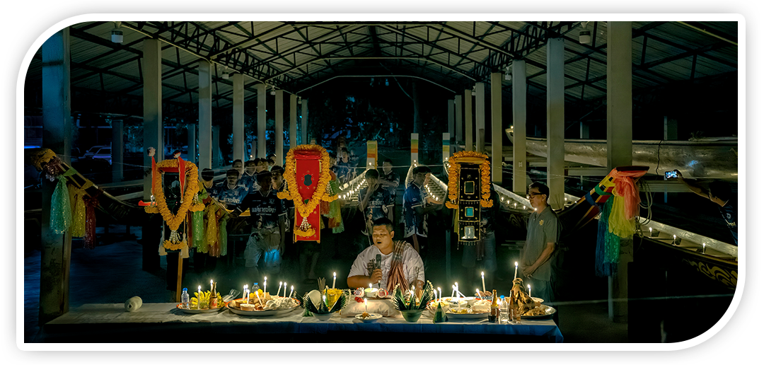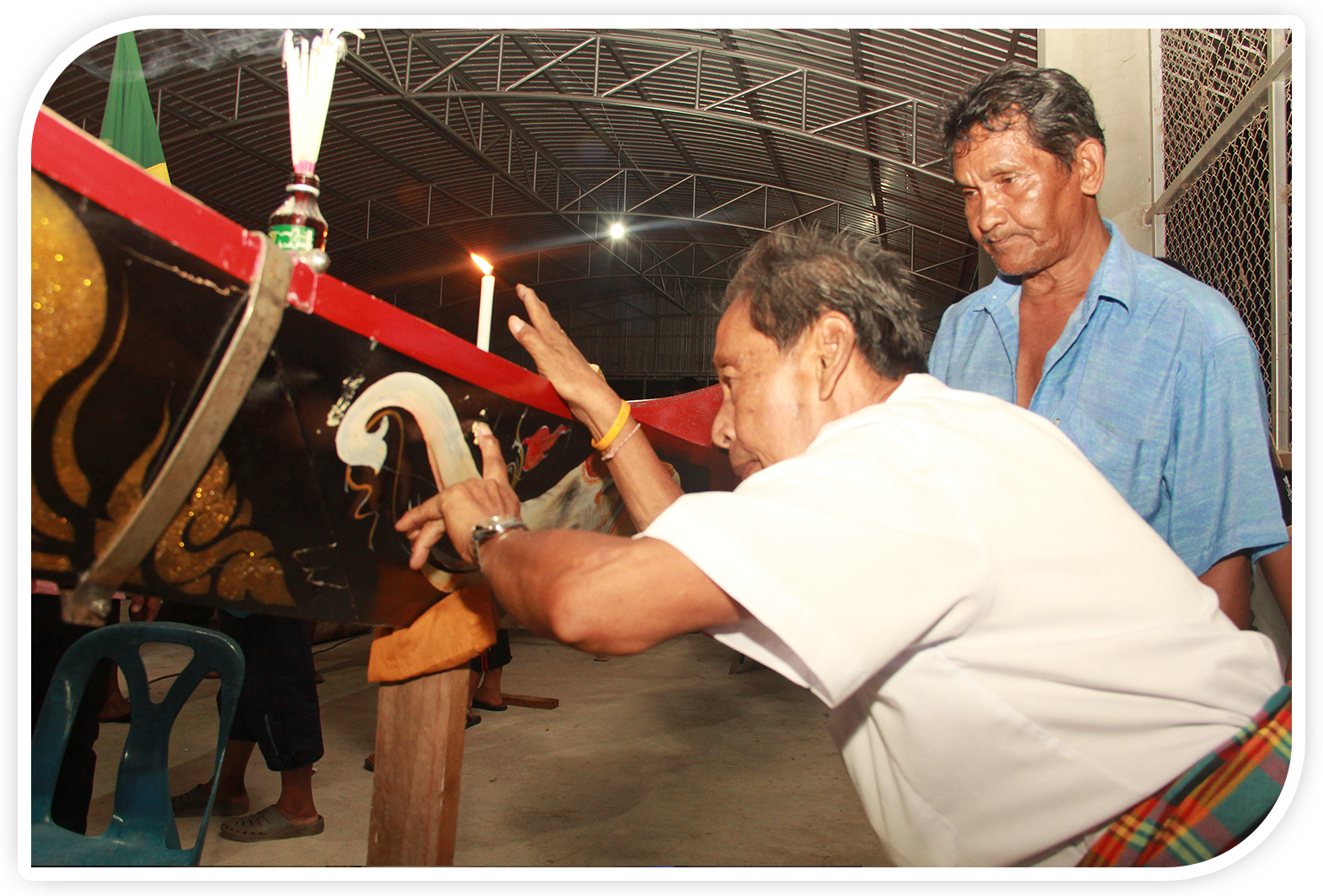 การทำขวัญเรือยาวขึ้นโขนชิงธงแบบฉบับคนหลังสวน